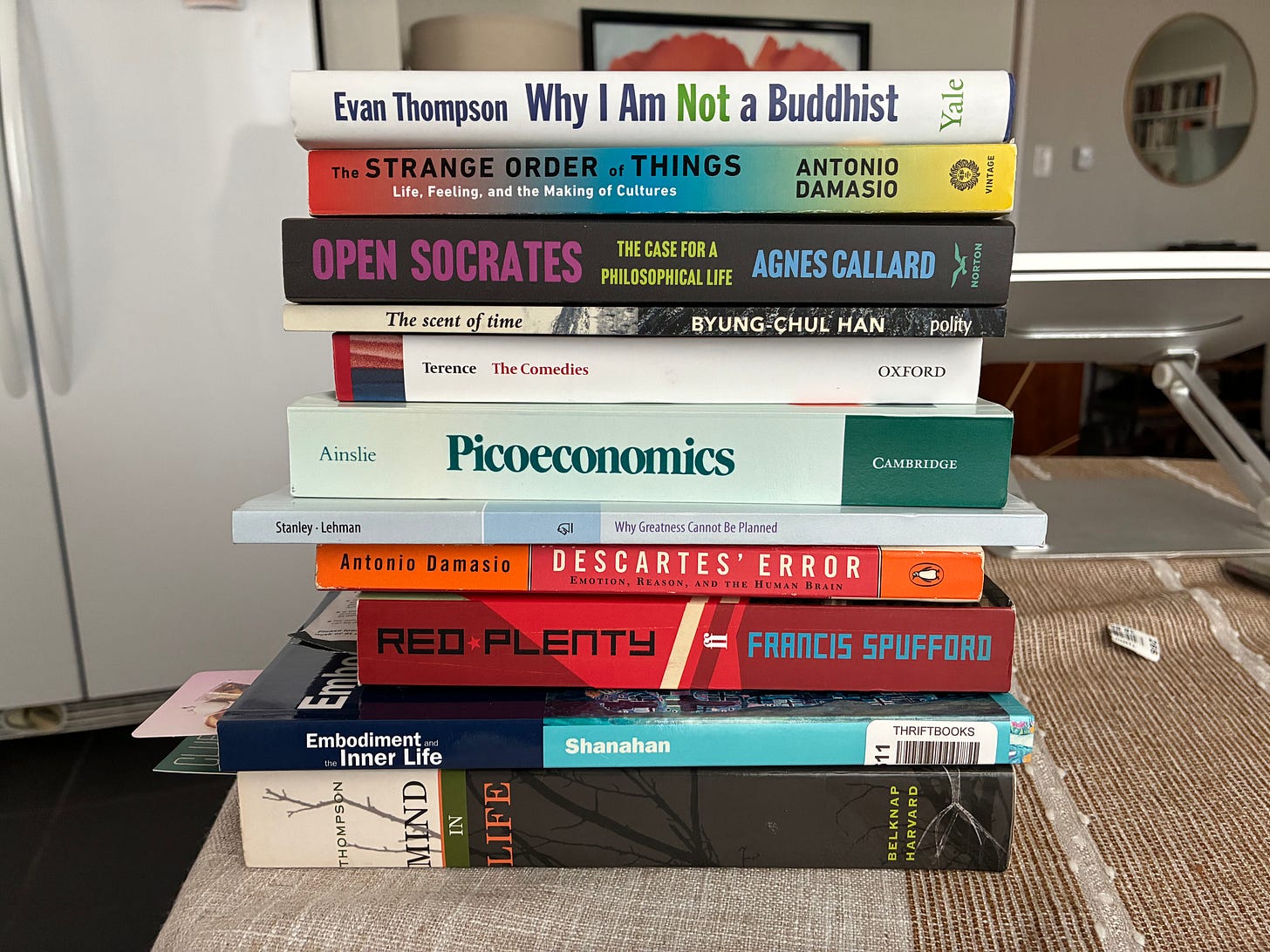 So I started working on a big idea about AI context vs. AI souls—more on that hopefully next week. And I started seeking community. Calling old friends, coworkers, fellow entrepreneurs, professional philosophers. A coalition of the contemplative, assembling a salon. And above all: finding likeminded spirits through reading.